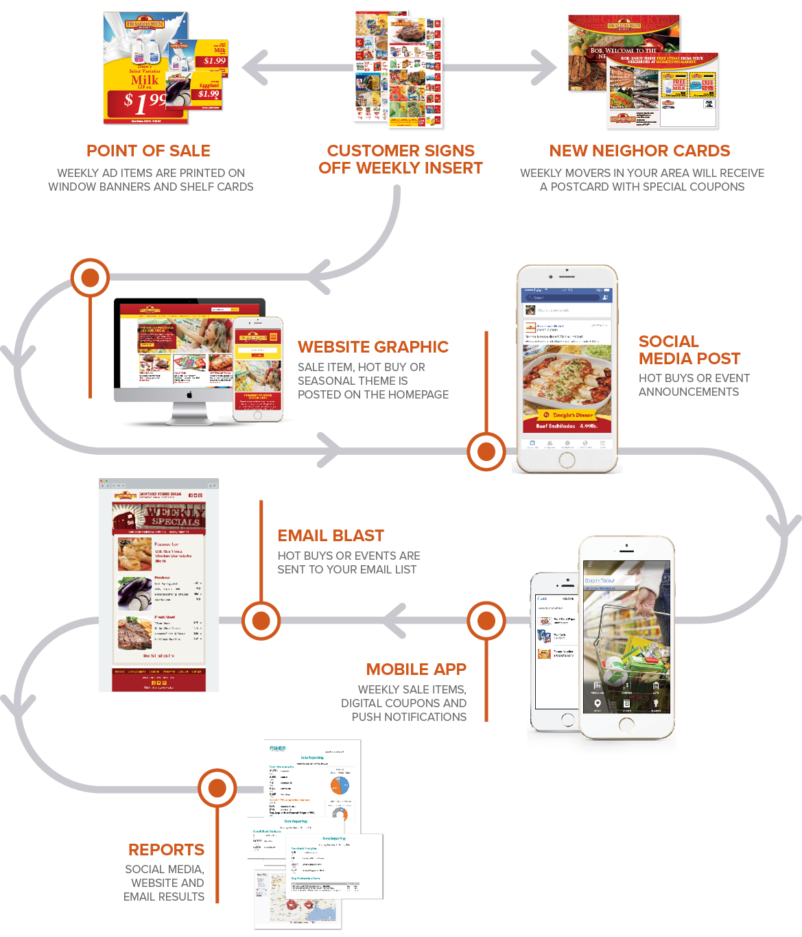 That’s why we offer Grocer 360 for businesses like yours. We combine the right mix of branding, print, and digital marketing to better reach your customers while expanding your presence in the digital world.
